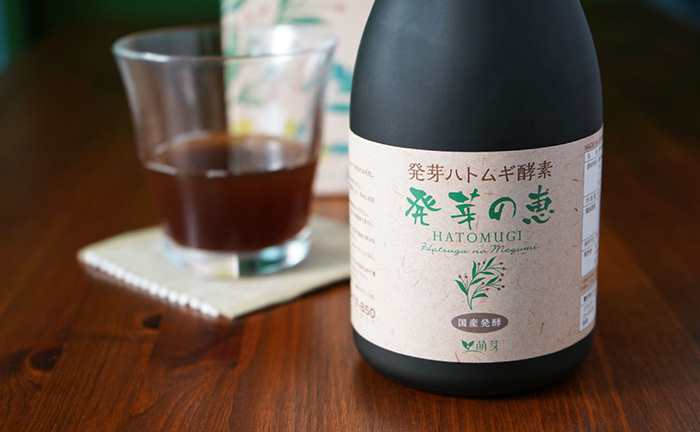 美容にも嬉しい発芽させたハトムギを主とした31種の国産原料と、52種類の発酵菌を爆発発酵させた「発酵菌代謝エキス」です。