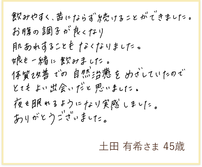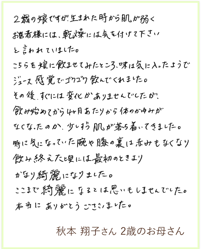 息子が問題なく飲んでくれたので、かゆみで悩んでいた姪っ子にも飲んでもらいました。